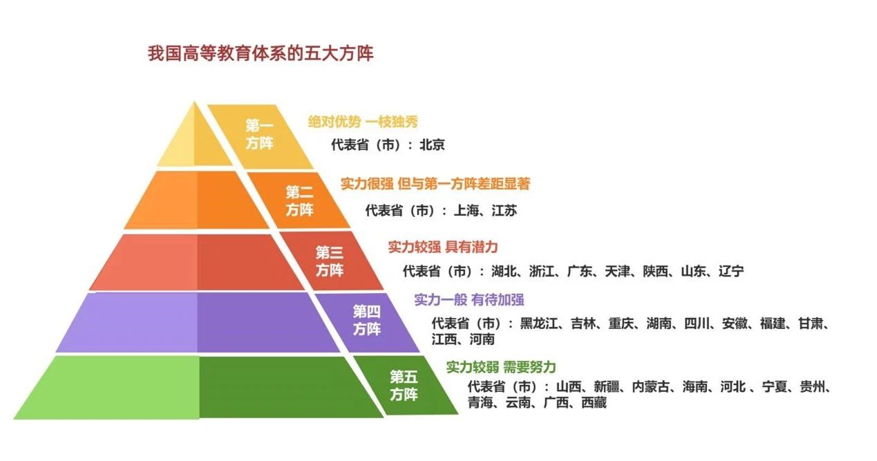 省域版“高等教育強國指數(shù)”顯示,北京一枝獨秀,以100分的絕對優(yōu)勢領(lǐng)跑全國;上海、江蘇實力強勁,位居第二方陣,但與北京的差距較為顯著,上海得分為56.49,江蘇得分為51.04;湖北、浙江、廣東、天津、陜西、山東、遼寧等7個省份位居第三方陣,其中湖北省以35.04分領(lǐng)跑第三方陣,位居全國第4位;黑龍江、吉林、重慶、湖南、四川、安徽、福建、甘肅、江西、河南等10個省份實力一般,位居第四方陣,黑龍江以20.28分領(lǐng)跑第四方陣,位居全國第11位;山西、新疆等11個省份的高等教育發(fā)展水平亟待提高,形成第五方陣。