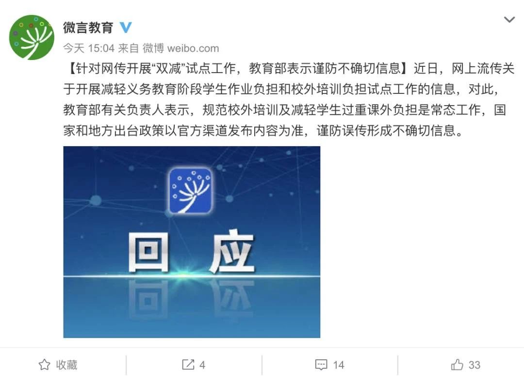 近日,網(wǎng)上流傳關(guān)于開展減輕義務(wù)教育階段學(xué)生作業(yè)負(fù)擔(dān)和校外培訓(xùn)負(fù)擔(dān)試點(diǎn)工作的信息,對此,教育部有關(guān)負(fù)責(zé)人表示,規(guī)范校外培訓(xùn)及減輕學(xué)生過重課外負(fù)擔(dān)是常態(tài)工作,國家和地方出臺政策以官方渠道發(fā)布內(nèi)容為準(zhǔn),謹(jǐn)防誤傳形成不確切信息。