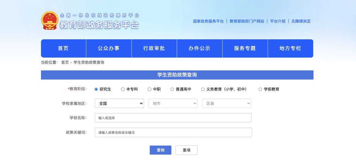 學(xué)生資助政策查詢(xún)服務(wù)頁(yè)面