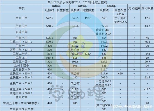 一診成績(jī)一出來(lái),家長(zhǎng)急的鬢角白。不論是考了多少分,都在焦慮地交流孩子的分?jǐn)?shù)能報(bào)哪個(gè)學(xué)校。尤其是今年中考新模式實(shí)行,跟往年相比又完全沒(méi)有參照系,著實(shí)急煞了相當(dāng)一批家長(zhǎng)。小編搜集整理了蘭州市近三年絕大多數(shù)普通高中的中考錄取分?jǐn)?shù)線(xiàn)(部分高中未公布),給大家分析一下各主要普高的錄取分?jǐn)?shù)線(xiàn)走勢(shì)。近三年來(lái),蘭州市城市四區(qū)中考市級(jí)示范性高中最低控制分?jǐn)?shù)線(xiàn)一直呈上升趨勢(shì),這里釋放了兩個(gè)信號(hào):一是中考的整體難度有所降低;二是普高的錄取人數(shù)比例有所下降。