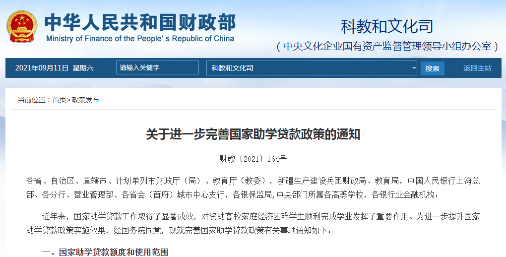 《關(guān)于進(jìn)一步完善國(guó)家助學(xué)貸款政策的通知》