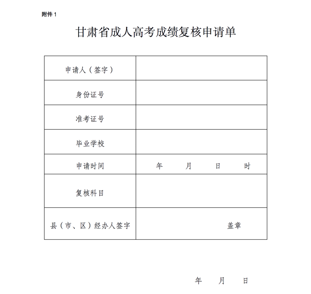 二、成績復(fù)核。考生若對成績有異議,可在成績公布之后5個工作日內(nèi),攜帶本人有效證件(身份證),到報(bào)名所在地(市、州)招生考試機(jī)構(gòu)填寫成人高考成績復(fù)核申請單(見附件1)提出成績復(fù)核申請。