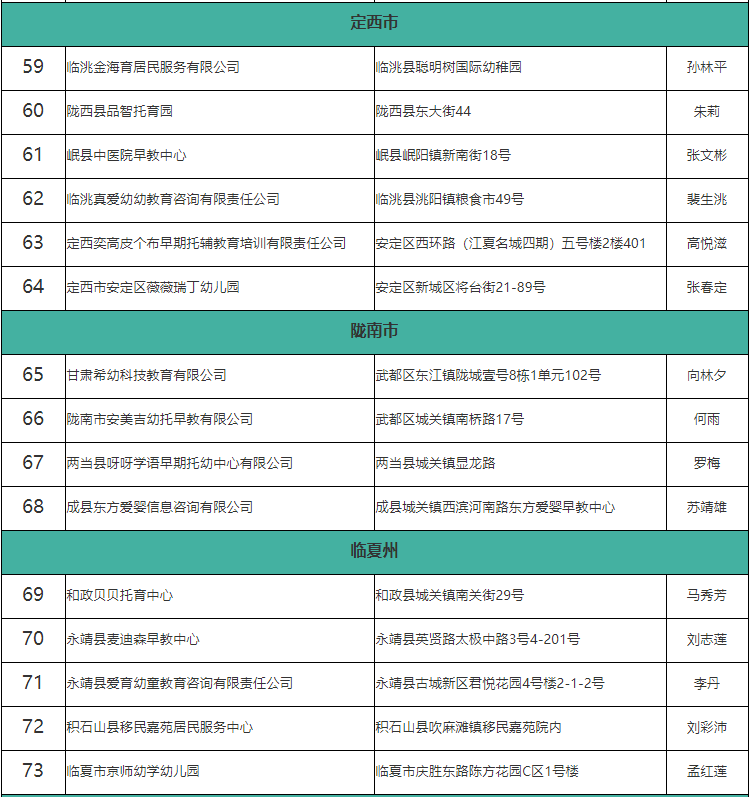 甘肅省備案托育機(jī)構(gòu)名單公布