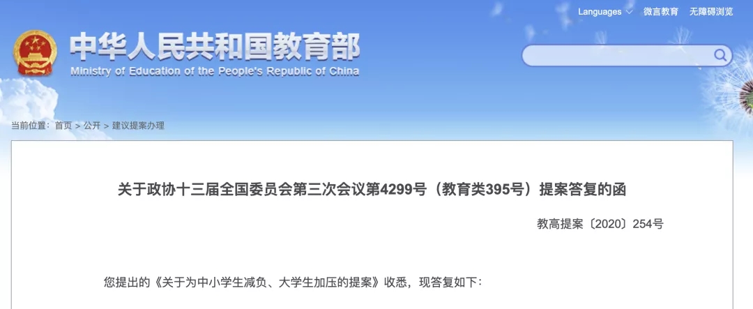 答復(fù)明確,下一步,教育部將根據(jù)黨中央和國(guó)務(wù)院的統(tǒng)一部署,在今后的工作中加快推進(jìn)高考改革步伐,進(jìn)一步改進(jìn)和完善相關(guān)政策措施,引導(dǎo)教師潛心教學(xué)、全心育人,激發(fā)學(xué)生的學(xué)習(xí)動(dòng)力和專(zhuān)業(yè)志趣,徹底扭轉(zhuǎn)中國(guó)教育“玩命的中學(xué)、快樂(lè)的大學(xué)”的現(xiàn)象,在加快推進(jìn)教育現(xiàn)代化過(guò)程中培養(yǎng)德智體美勞全面發(fā)展的社會(huì)主義建設(shè)者和接班人。