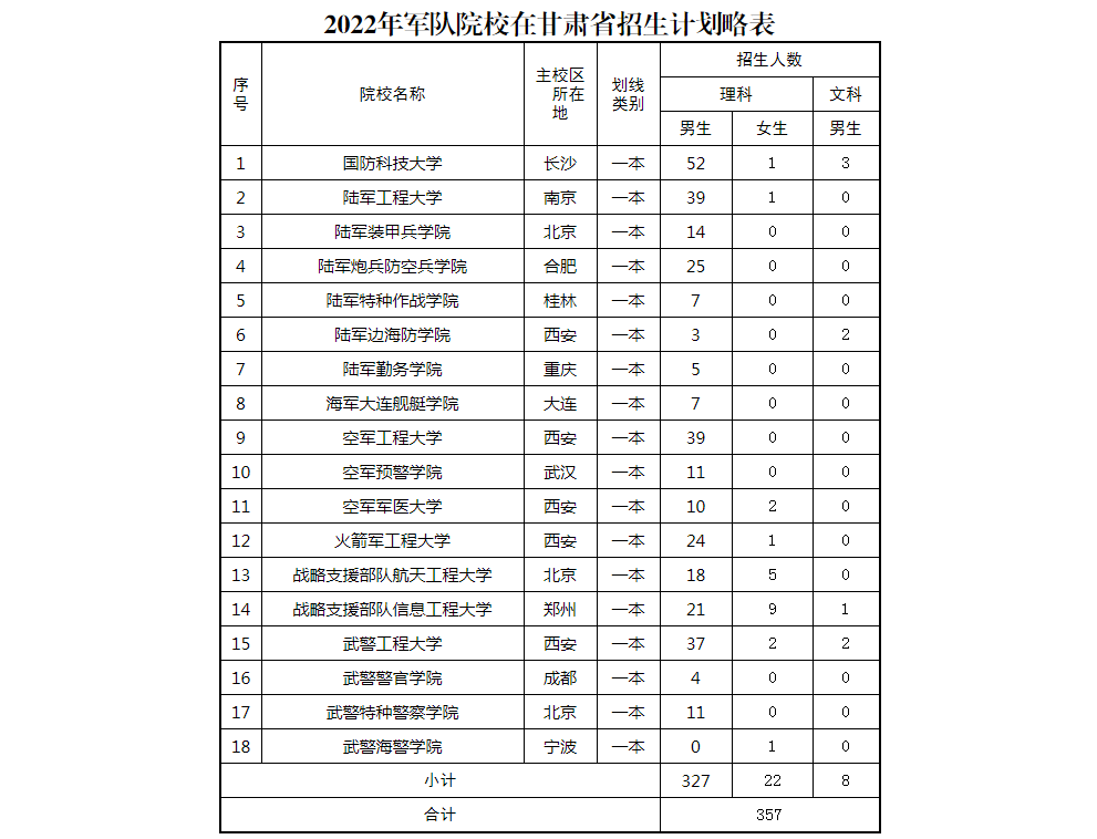 附件:2022年軍隊(duì)院校在甘肅省招生計(jì)劃略表