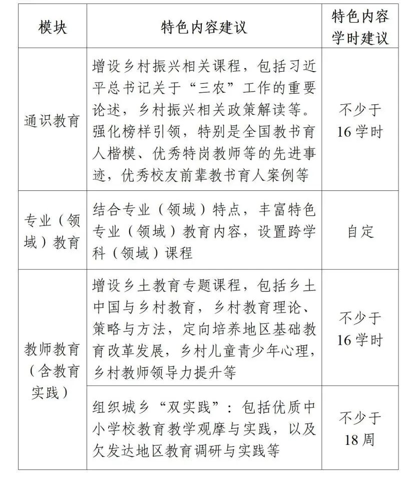 在合理設(shè)置通識教育、專業(yè)(領(lǐng)域)教育、教師教育(含教育實(shí)踐)課程結(jié)構(gòu)的基礎(chǔ)上,圍繞培養(yǎng)目標(biāo)和畢業(yè)要求,結(jié)合中西部欠發(fā)達(dá)地區(qū)教育實(shí)際,重點(diǎn)體現(xiàn)以下特色課程內(nèi)容。