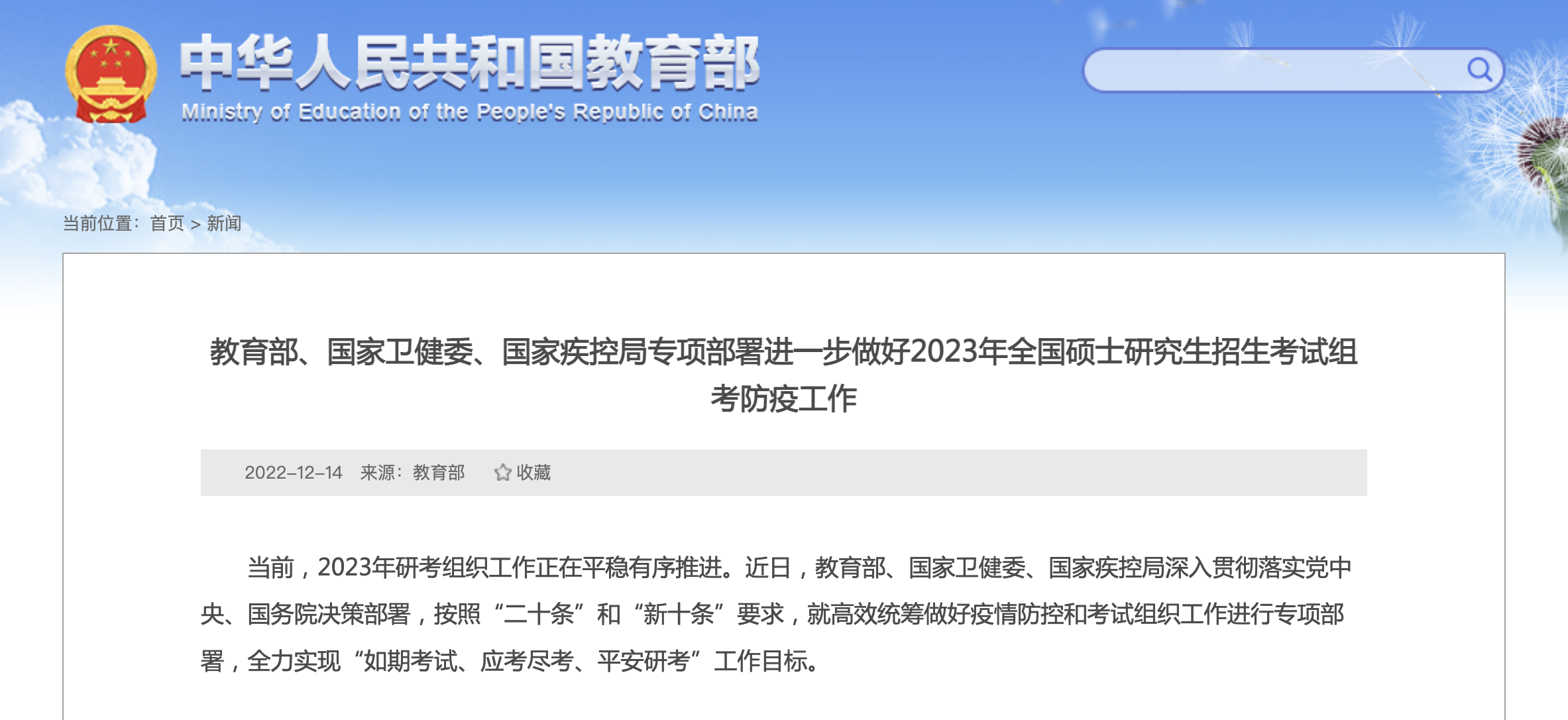 教育部、國家衛(wèi)健委、國家疾控局專項部署進(jìn)一步做好2023年全國碩士研究生招生考試組考防疫工作