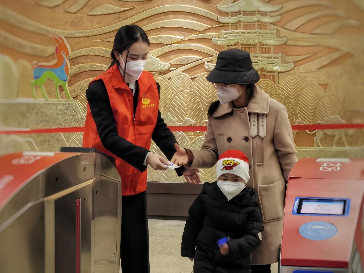 從1月7日開始,就讀于哈爾濱金融學(xué)院的熊薇就一直堅(jiān)守在軌道交通1號(hào)線西關(guān)站、東方紅廣場站等站點(diǎn)。擁擠的人群中,她穿著“蘭州青年志愿者”字樣的紅馬甲忙個(gè)不停,顯得格外亮眼。
