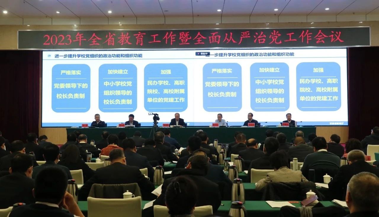2月16日,2023年全省教育工作暨全面從嚴(yán)治黨工作會(huì)議在蘭州召開。會(huì)議以習(xí)近平新時(shí)代中國(guó)特色社會(huì)主義思想為指導(dǎo),深入學(xué)習(xí)貫徹黨的二十大精神、2023年全國(guó)教育工作會(huì)議精神,貫徹落實(shí)省委省政府關(guān)于教育工作的部署要求和省紀(jì)委十四屆二次全會(huì)精神,全面總結(jié)2022年全省教育工作,研究部署2023年全省教育工作、教育系統(tǒng)全面從嚴(yán)治黨工作。
