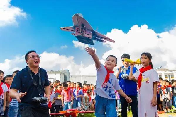 9月1日,江蘇如皋磨頭小學(xué)學(xué)生參與航模表演。徐慧 攝