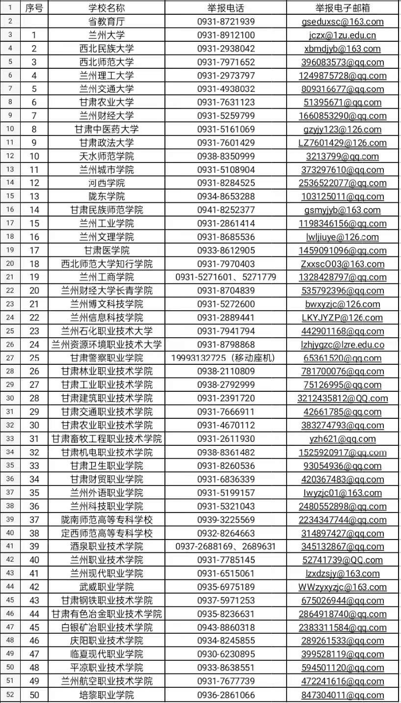 甘肅省高校畢業(yè)生就業(yè)統(tǒng)計工作舉報電話